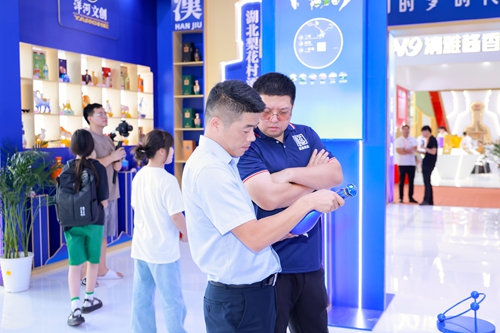 琳瑯滿目的產(chǎn)品、川流不息的消費者、熱情忙碌的經(jīng)銷商……一一彰顯了蘇酒的魅力和影響力。特別是藍色的洋河展廳人氣旺盛,氛圍熱烈,前來咨詢的觀眾絡繹不絕。