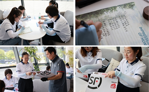 初夏的酒都公園涼風(fēng)習(xí)習(xí),酒史館前的大草坪,布置精美雅致,粉紅氣球與鮮花交相輝映,將儀式感拉滿,歡迎酒嫂的到來?!拔覑垩蠛印薄拔沂茄蠛泳粕?,我自豪”“愛上洋河,愛在洋河”“小家美滿,洋河大家越來越好”……酒嫂拍照留念記錄下最美好的時刻,并寫下對愛人、對家庭、對洋河最真摯的祝愿。